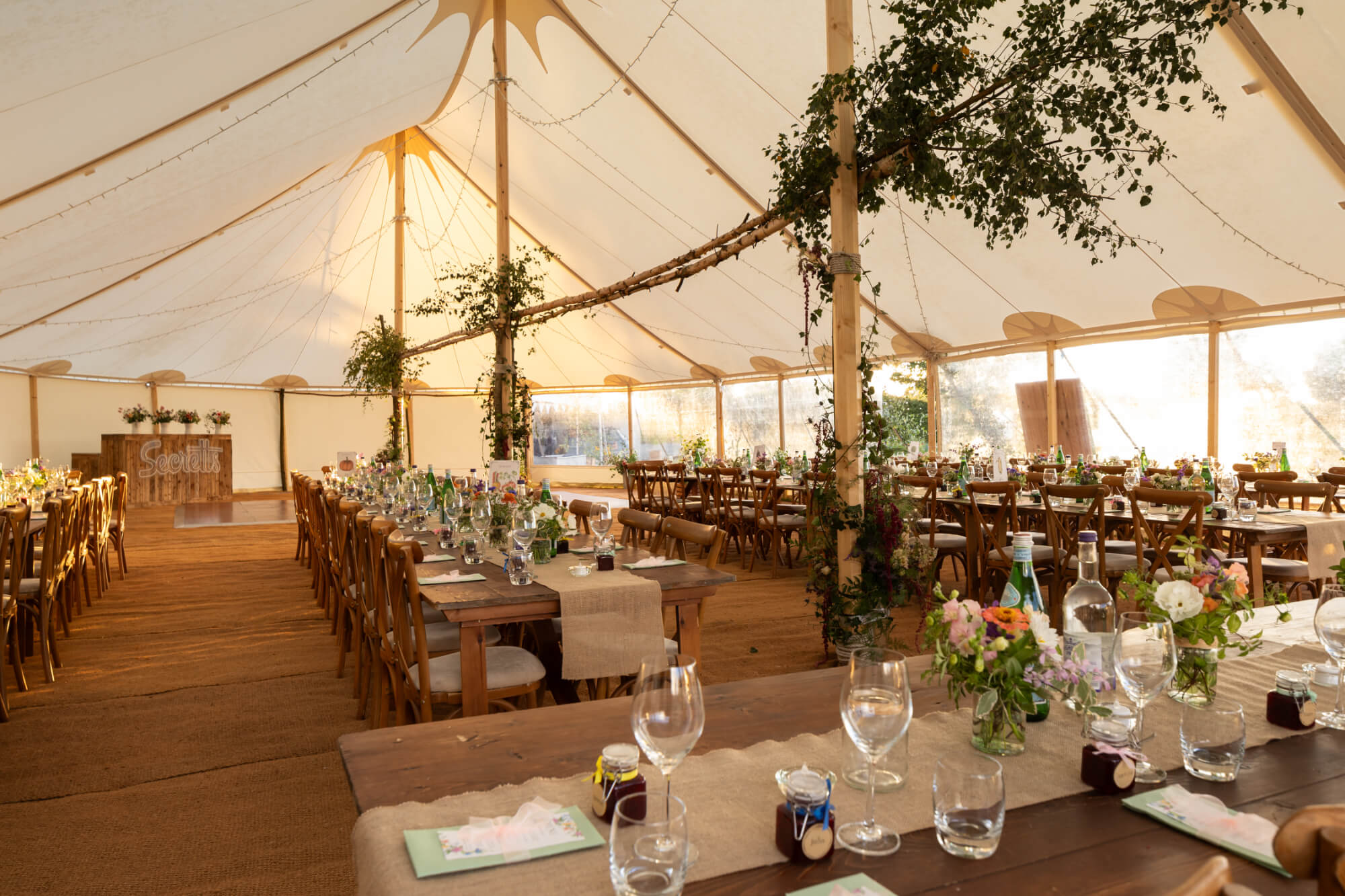 Luxury sailcloth marquees radiate timeless elegance, providing the perfect setting for a quintessential British wedding. Crafted from beautifully hand-stitched sailcloth and supported by sculpted wooden poles, they offer an exquisite blend of sophistication and natural charm. Their distinctive rounded ends enhance their graceful design, and they come with the option of panoramic window walls to perfectly frame the surrounding landscape. Available in 9m and 12m widths, they start at 9m x 9m or 12m x 12m, and both spans can be built infinitely long by increasing in 6m increments.
