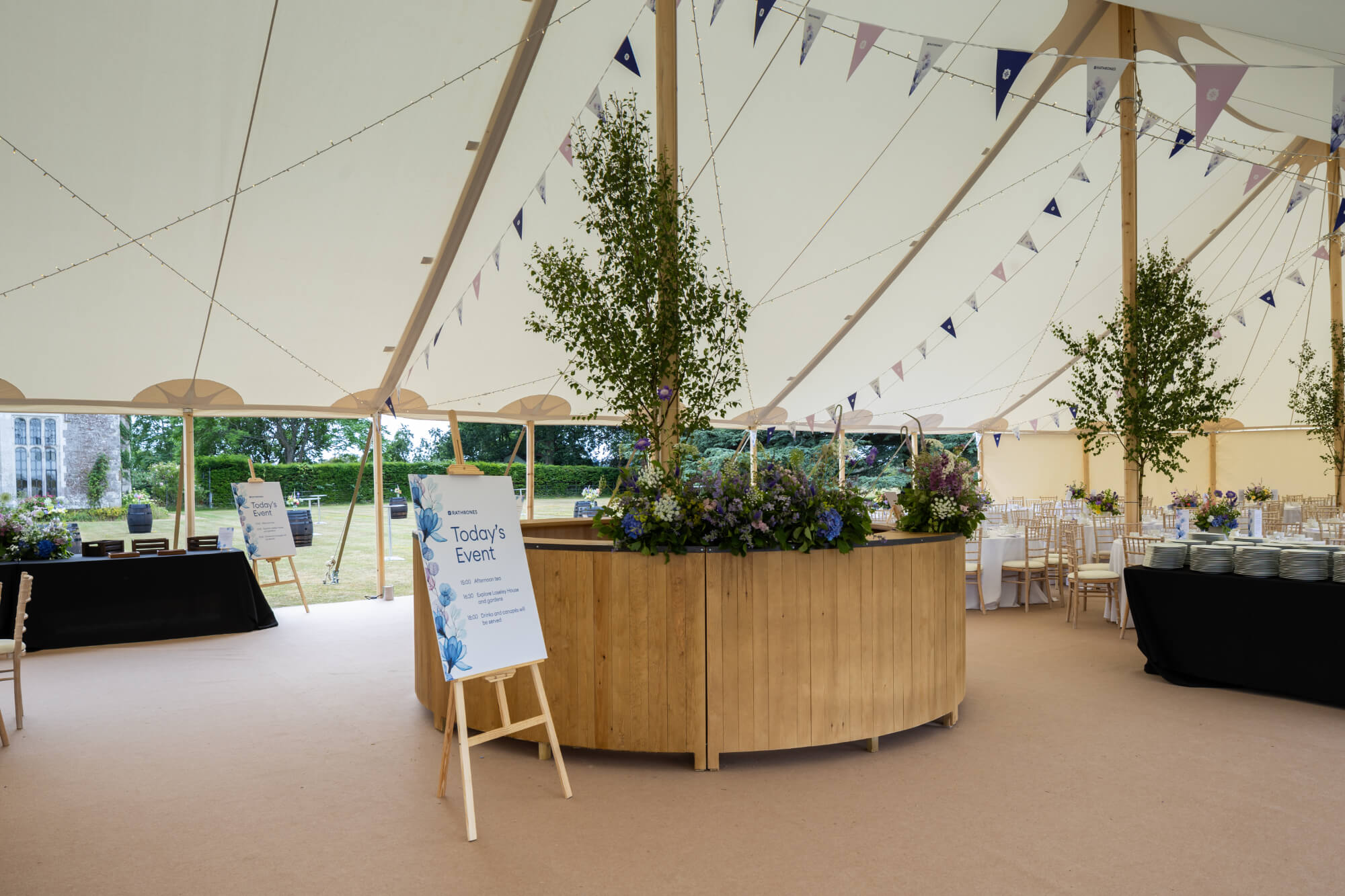 Furnishing your marquee setup is a wonderful opportunity to develop your internal design and layout. While wooden chairs with coloured seat pads offer the chance to be either traditional or creative with your colour scheme, the choice between round tables and trestle tables allows the design of any table layout you have in mind. We also have a variety of bar units to help make that a real feature of your marquee setup.